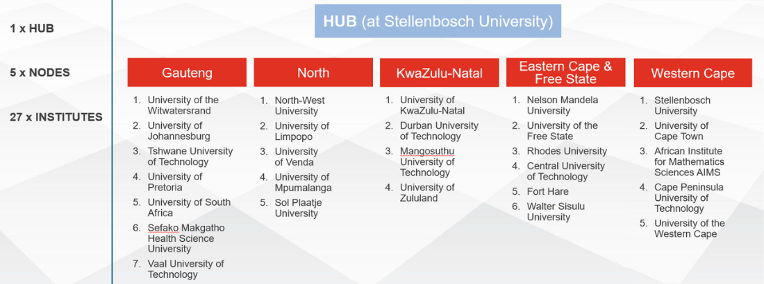 Collaboration is central to NITheCS’ success. Operating as a consortium, the Institute has contractual agreements with all public universities in South Africa, as well as the African Institute for Mathematical Sciences (AIMS South Africa).