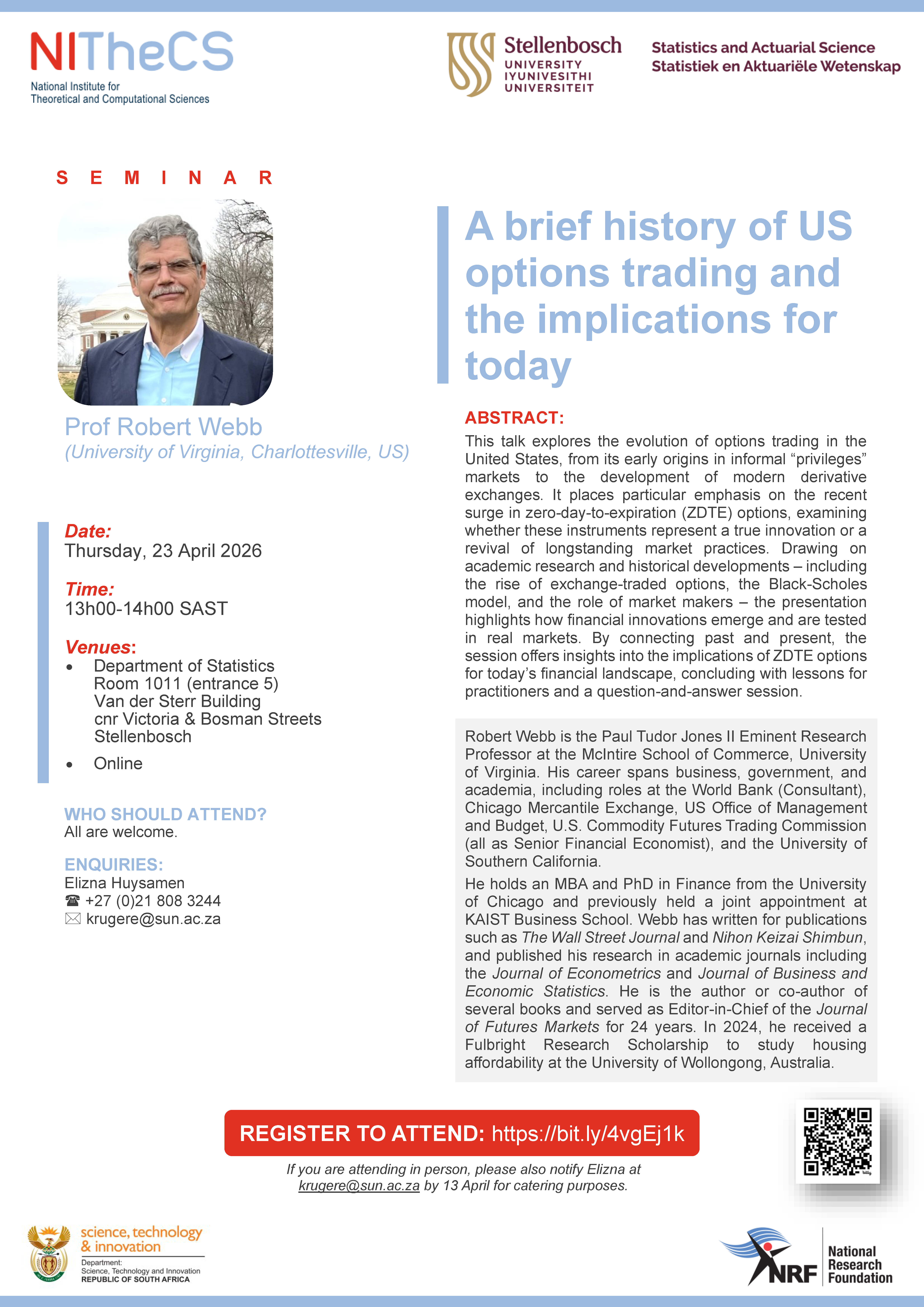 NITheCS & SU Dept of Statistics & Actuarial Science Seminar: 'A brief history of US options trading and the implications for today'