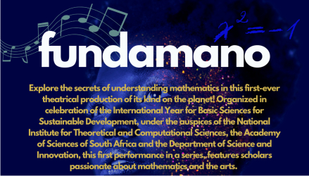 There has been very positive feedback on fundamano. The project presents mathematics concepts in an entertaining show that ‘takes you on a journey of appreciating the complexity of mathematics as something arising naturally by a need for a better solution to a real-life problem…’ Alice and Bob, school pupils spending time with friends in a Café, end up rediscovering fascinating mathematical concepts during attempts to exchange secret messages with one another. Among others, fundamuno is an explorative discussion about parallels between creative processes in music and mathematics. It included pianist Kate Watson performing ‘Bug Book’ (Goggaboek) by South African composer Hans Roosenschoon. This creative idea was organised in celebration of the International Year for Basic Sciences for Sustainable Development under the auspices of NITheCS, the Academy of Sciences of South Africa (ASSAf) and the Department of Science and Innovation. This first performance in a series, featured scholars who are passionate about both mathematics and the arts.